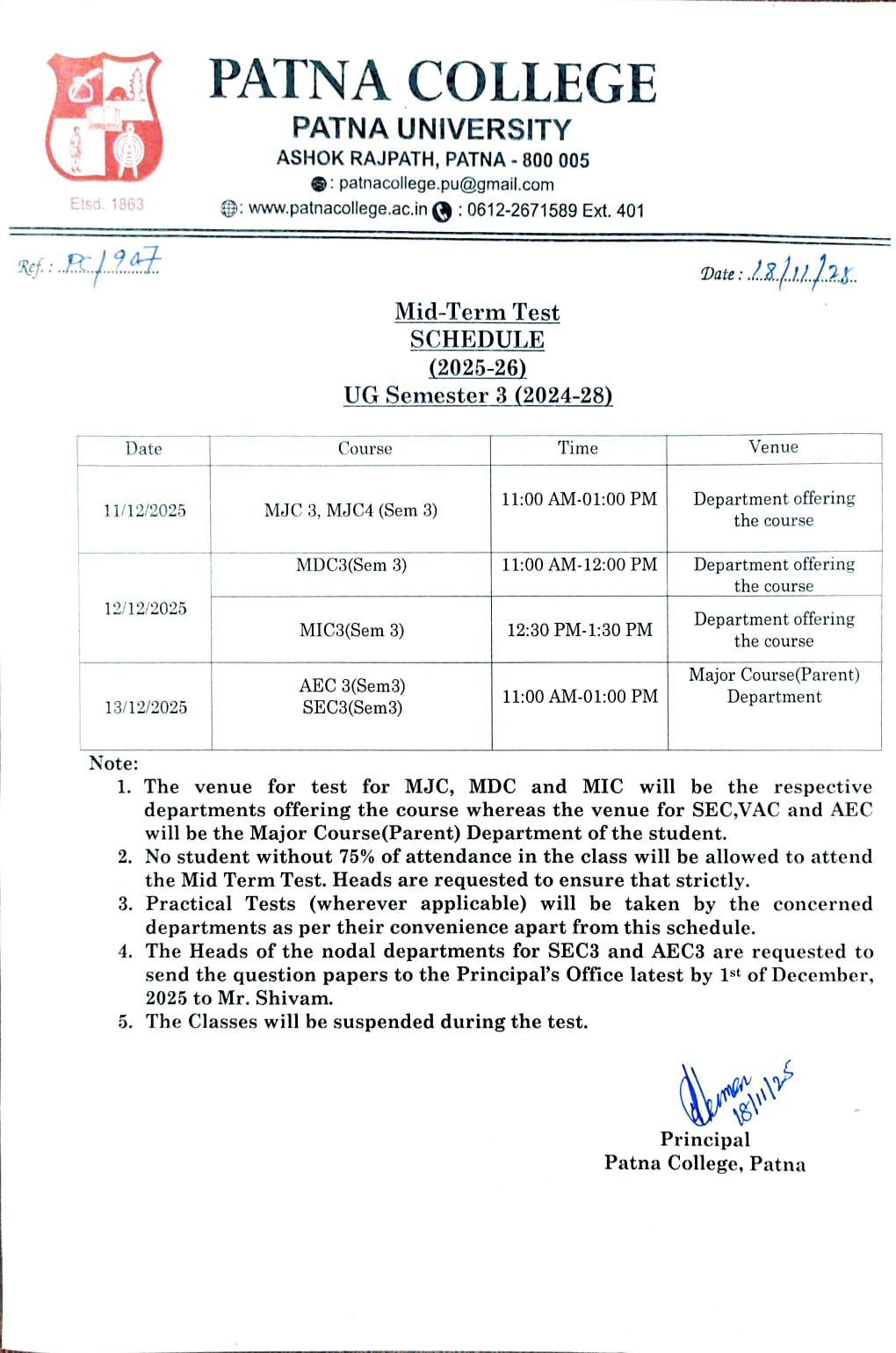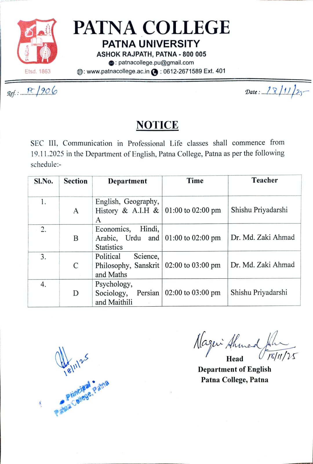 Patna College practices e-governance through its updated website, which shares key academic and administrative notices. Digital platforms are used to improve communication and ensure transparency.